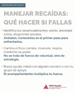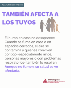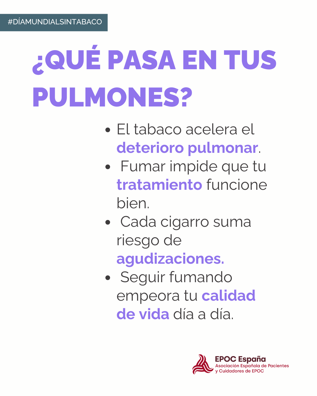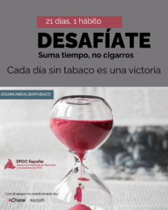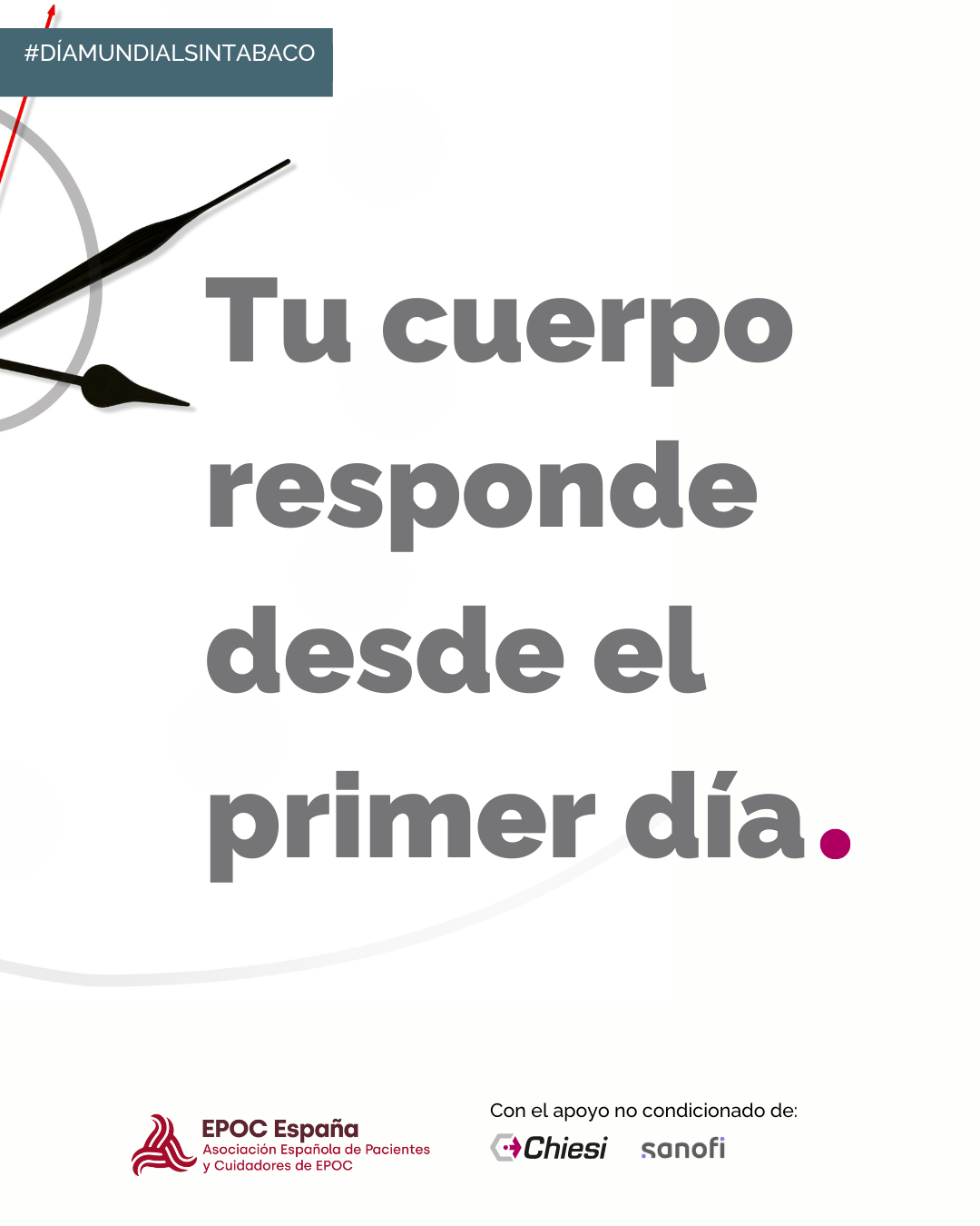 A través de esta campaña, EPOC España recuerda que respirar es un derecho. Dejar de fumar no es un reto individual, se trata de tu salud y también de una cuestión de salud pública. Un día sin tabaco es un pulmón que resiste. Cada día sin tabaco cuenta.
