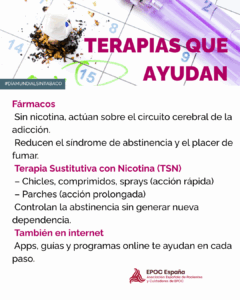 Existen tratamientos financiados por el sistema público de salud y programas de acompañamiento que aumentan las posibilidades de éxito. El personal sanitario puede orientar sobre las opciones disponibles, incluyendo terapias sustitutivas, apoyo psicológico y seguimiento médico.
