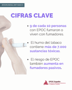 El tabaquismo es la principal causa de aparición de la EPOC y también uno de los principales factores de empeoramiento. Más del 80 % de los casos de EPOC están relacionados con el consumo de tabaco. Fumar daña de forma progresiva los pulmones y reduce su capacidad funcional. En las personas diagnosticadas con EPOC, seguir fumando impide que los tratamientos sean efectivos y acelera el deterioro de su estado de salud.