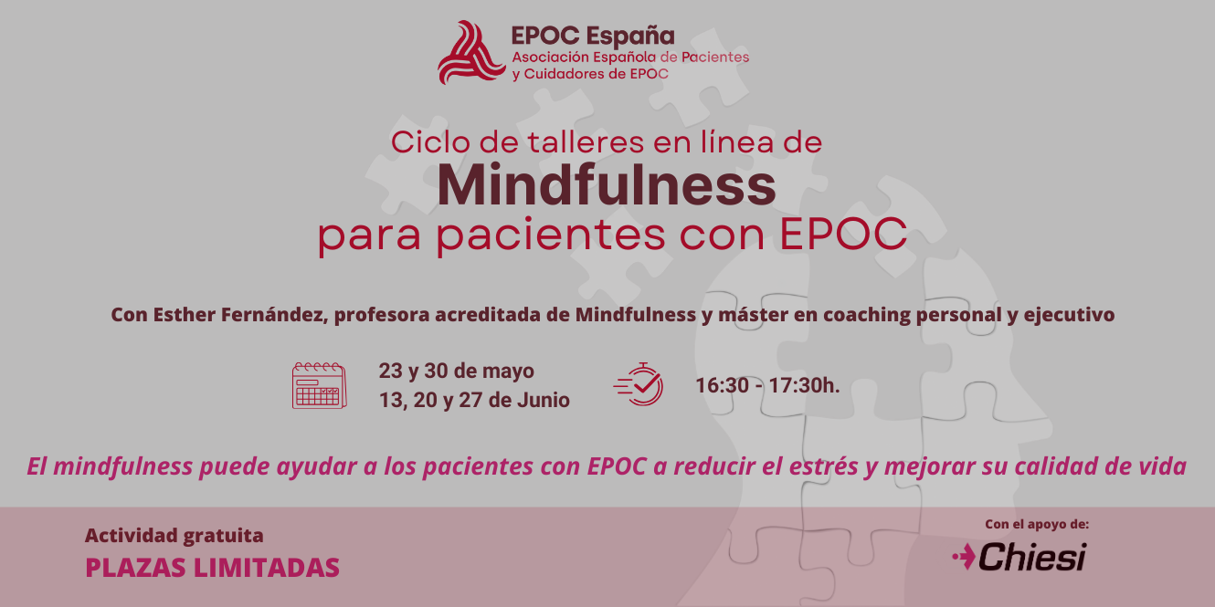 La asociación EPOC España organiza un ciclo de talleres de Mindfulness destinado a pacientes con EPOC, dirigido por Esther Fernández, profesora acreditada de mindfulness y máster en coaching personal y...
